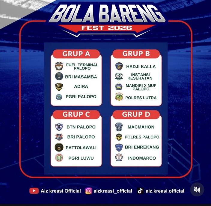PALOPO – Atmosfer olahraga di Kota Palopo kian semarak dengan digelarnya turnamen mini soccer “Bola Fest 2026” yang resmi dimulai pada Jumat sore.